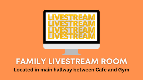 We have created a place for families to continue to view service in person when children become restless during the service. You can find the Family Livestream Room on the main hallway in between the Coffee Shop and Gym.