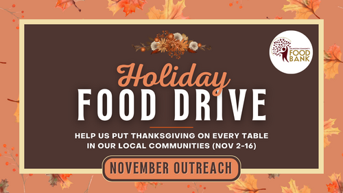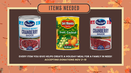 Donation bins will be in the Lobby from November 2nd through the 16th.